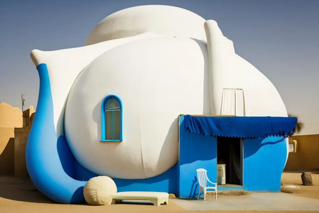 The artists are mostly inspired by Middle Eastern culture, traditions, and architecture, and this fascination of theirs is what they show in their artworks. The Utopic Arabia project was born when the artists were in a café in Dubai. “[We made] some sketches of inflatable shapes in a traditional village in the middle of nowhere and we saw a lot of potential in this idea,” the artistic duo explains.